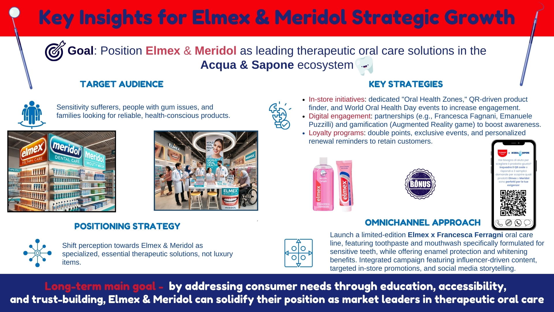Redefinition of the market strategy of Acqua & Sapone for Elmex and Meridol in, transforming them into essential therapeutic oral care solutions. Through innovative in-store initiatives, influencer collaborations, and a robust omnichannel approach, we bridged the gap between consumer needs and brand positioning.